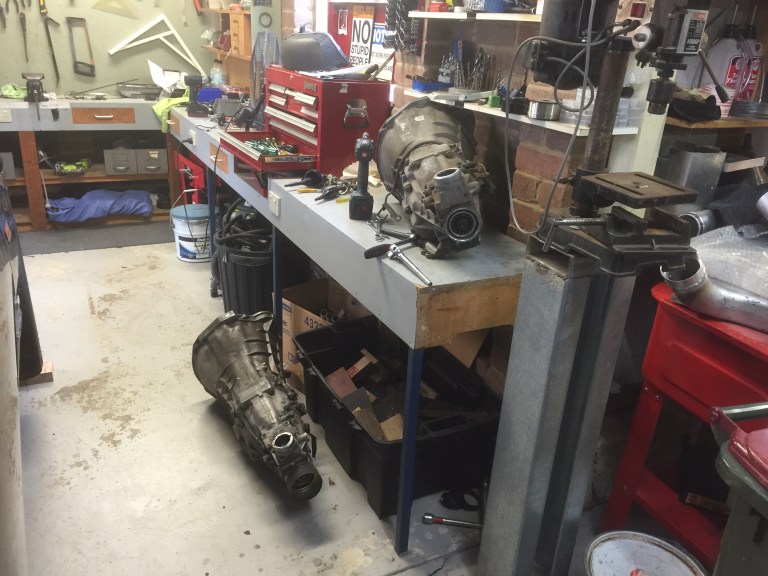 Some time ago we realised we had a gearbox from a non-turbo R33, and that certainly wouldn’t be up to the task of handling the amount of torque the new engine would throw at it. So, after purchasing about eleventy billion different proper R33 Turbo Gearboxes, we found one we’re happy to swap out.