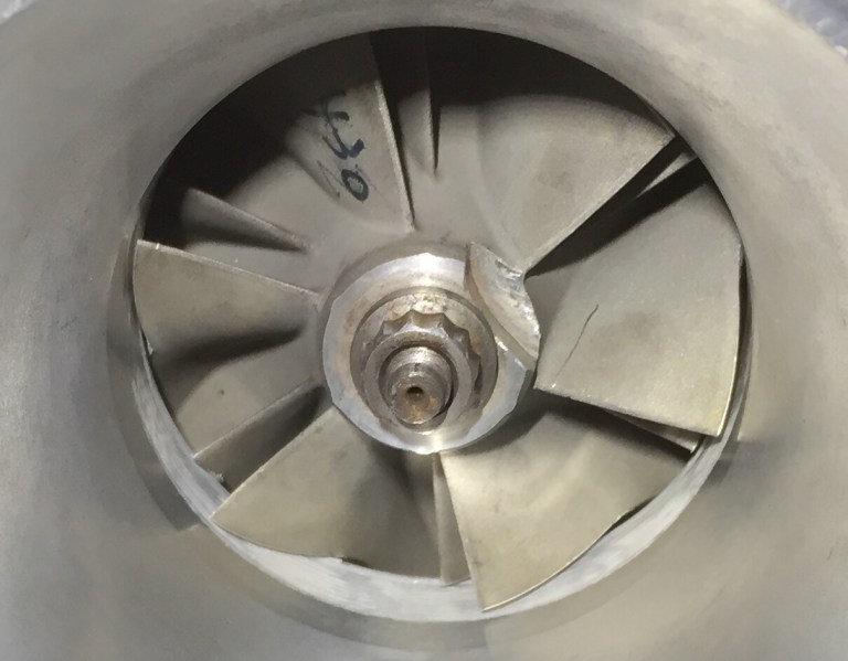 Vic, our tuner extraordinaire, ran a few light pulls to ensure everything was ok with the tune and all was looking well… But just as we tried for a slightly higher (only 18psi) pull on the Dyno that was enough to destroy the – already suspect – turbo bearing and caused the compressor blades to foul on the housing, hence the exhaust smoke and sound of the blades ‘tinking’ at the end.